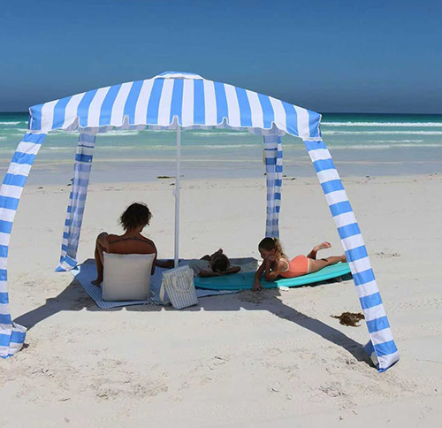The Foldable Beach Cabana Tent 5 reimagines what a beach shade can be. No need to worry about your umbrella flying down the beach, not having enough shade, or overheating in an enclosed shelter