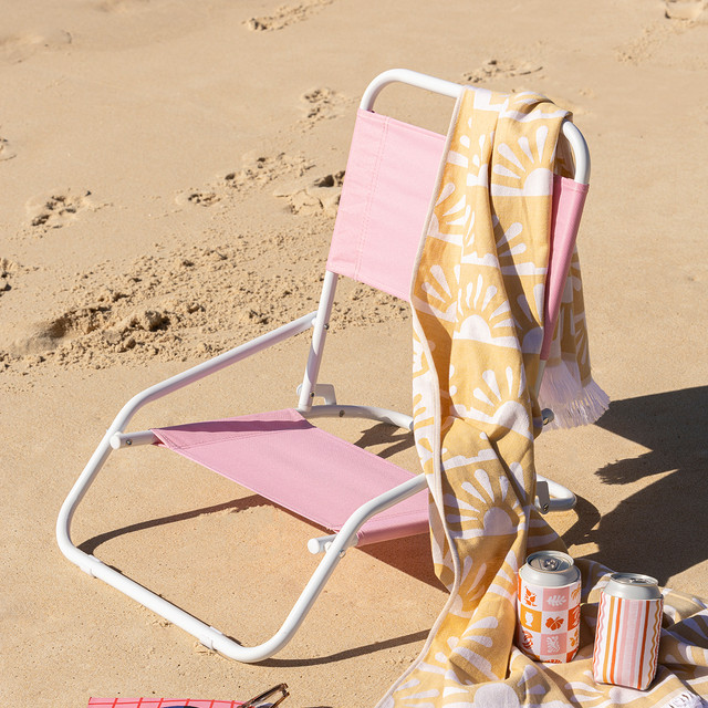 A trendy, lightweight and comfortable beach chair with a bright design. Made from durable water-resistant fabric, this carry chair has an adjustable carry strap making it easy to carry.