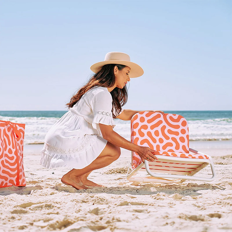 High Quality Outdoor Comfortable Red Pattern Low Beach Chair