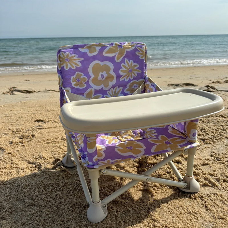 Modern Design Portable Outdoor Purple and Yellow Pattern Baby Beach Chair Made of Metal