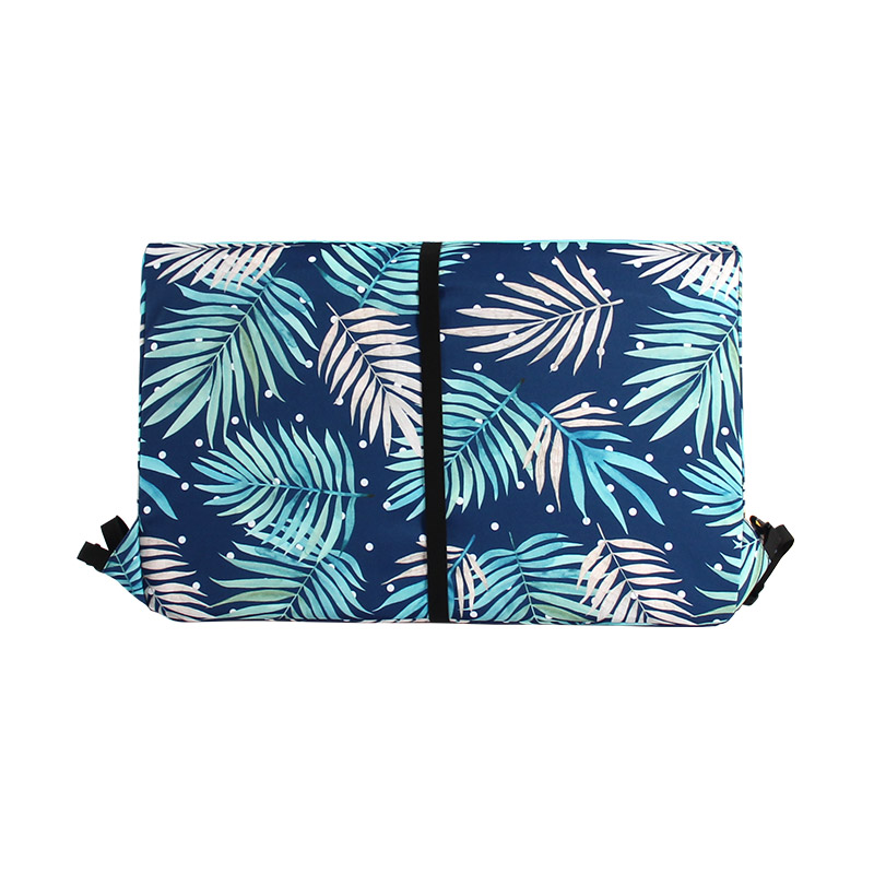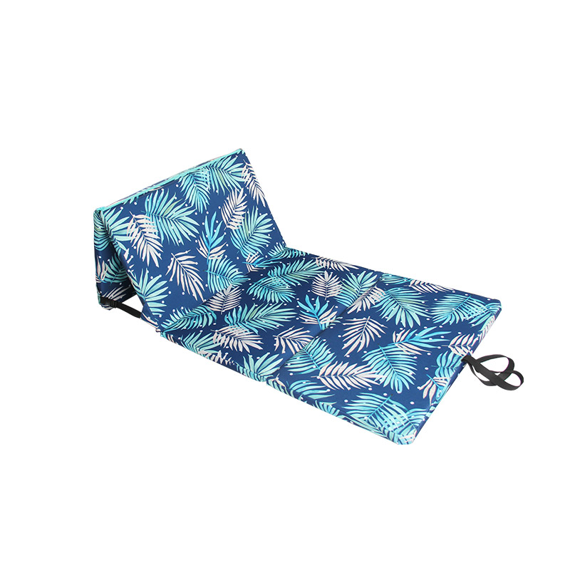 Navy Bule Leaves Pattern Foldable Beach Lounge Chairs Mat with Adjusting Height Easy Carry