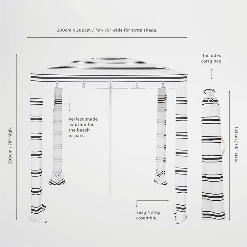 The Premium Seaside Large Size Sun Shelter Beach Cabana with Black and White Stripe