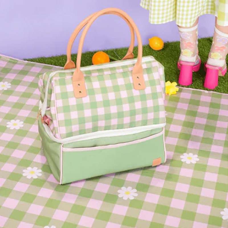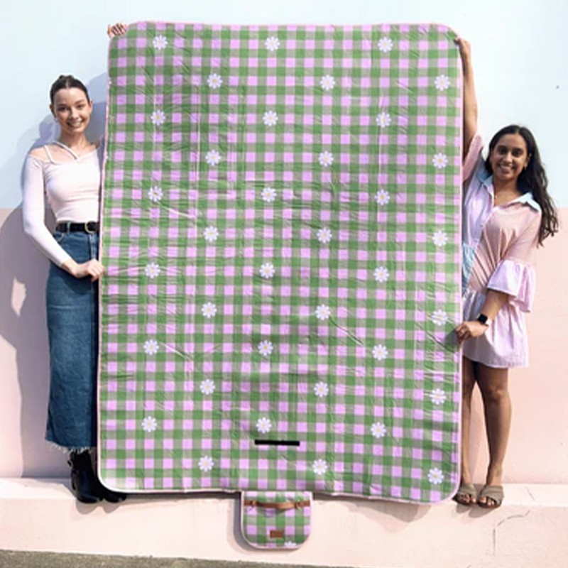 Extra Large Portable Waterproof Outdoor Camping Beach Green Plaid Pattern Picnic Blanket