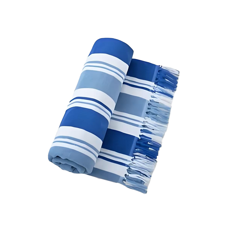 Custom Cotton Stripe Bahama Blue Harbour Cabana Beach Towel