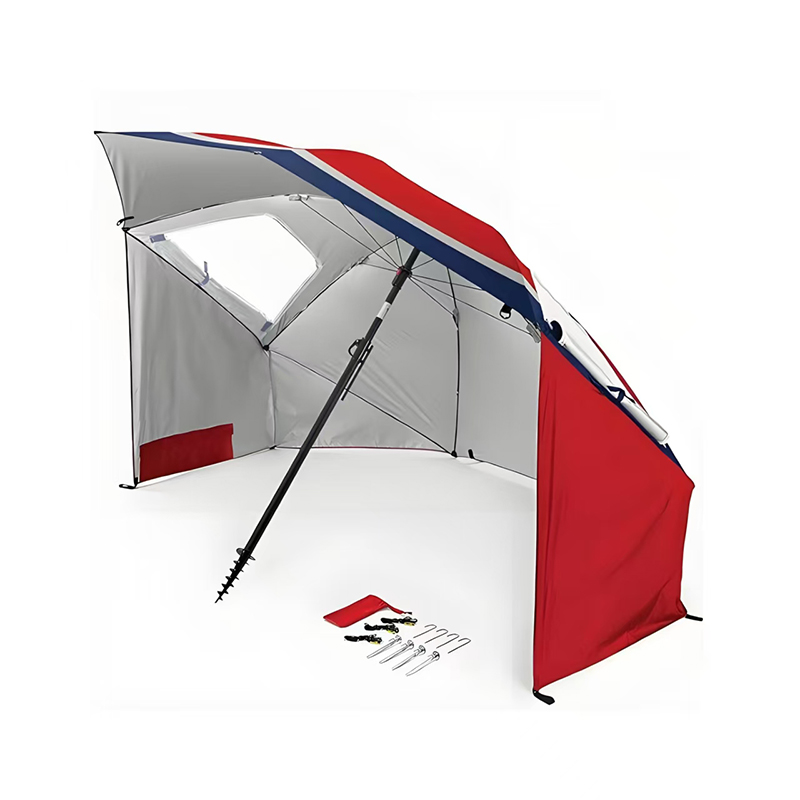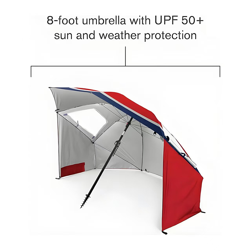 Red White Blue Stripe UPF 50+ PE Canopy Beach Umbrella Sunshade Shelter