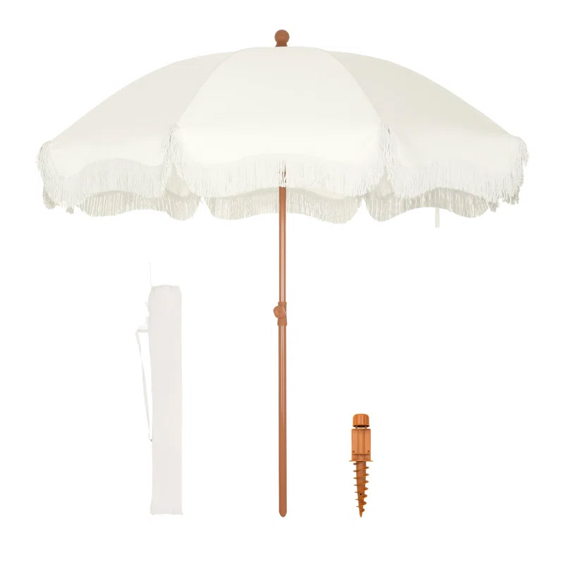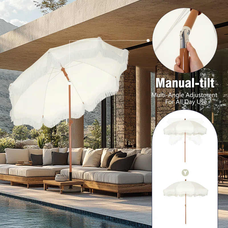 Outdoor Tassel Umbrella - Beige