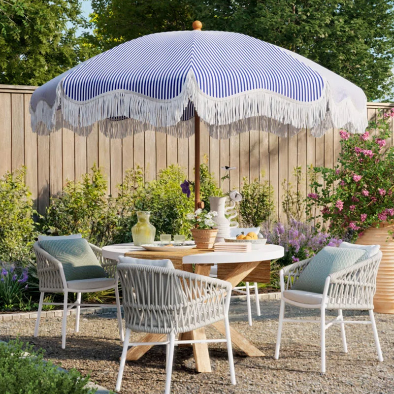 Outdoor Tassel Umbrella - Navy Stripe