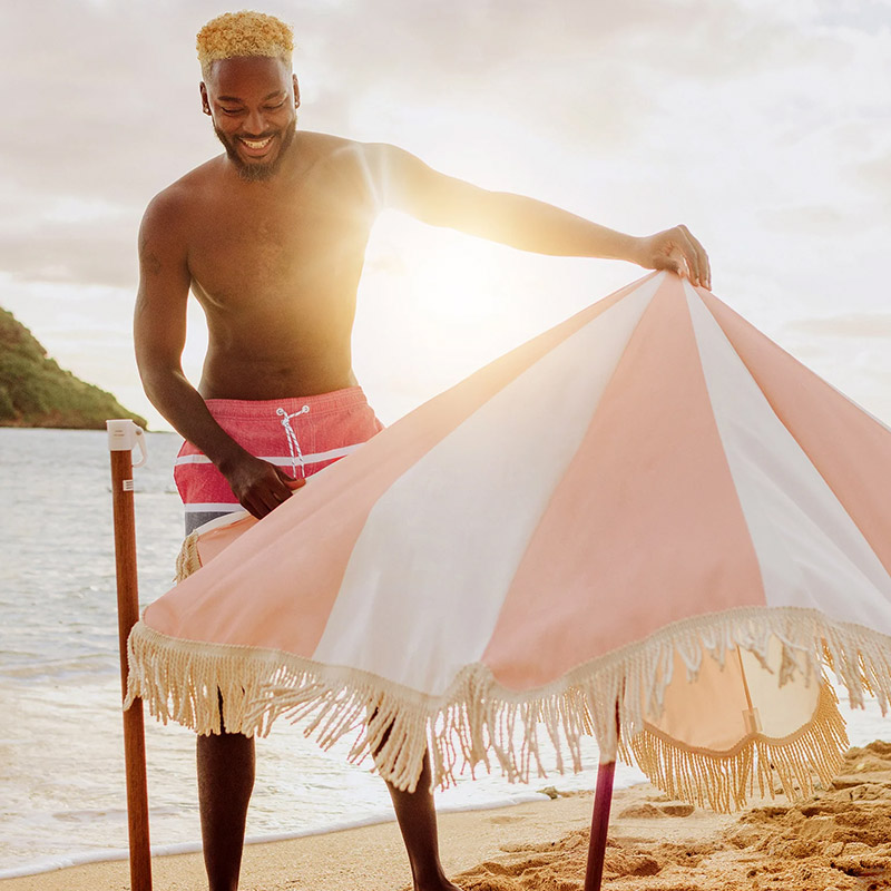 Summerland Beach Umbrella - Pink Salt Stripe
