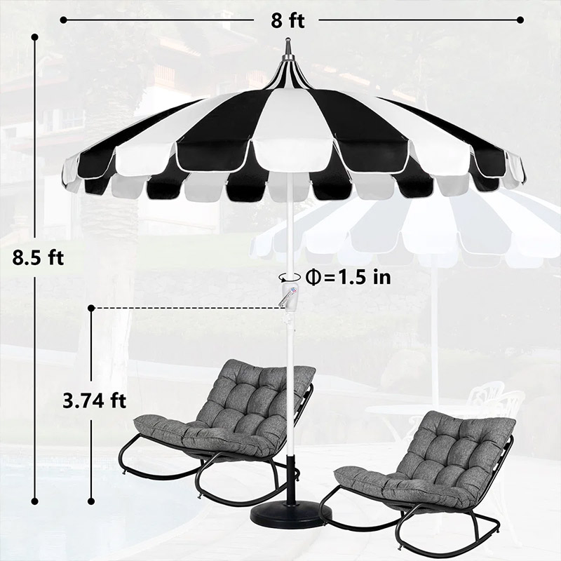 Custom Printed Luxury Garden Patio Sun Parasols Outdoor Vintage Pagoda Umbrella with deep blue and White Stripes