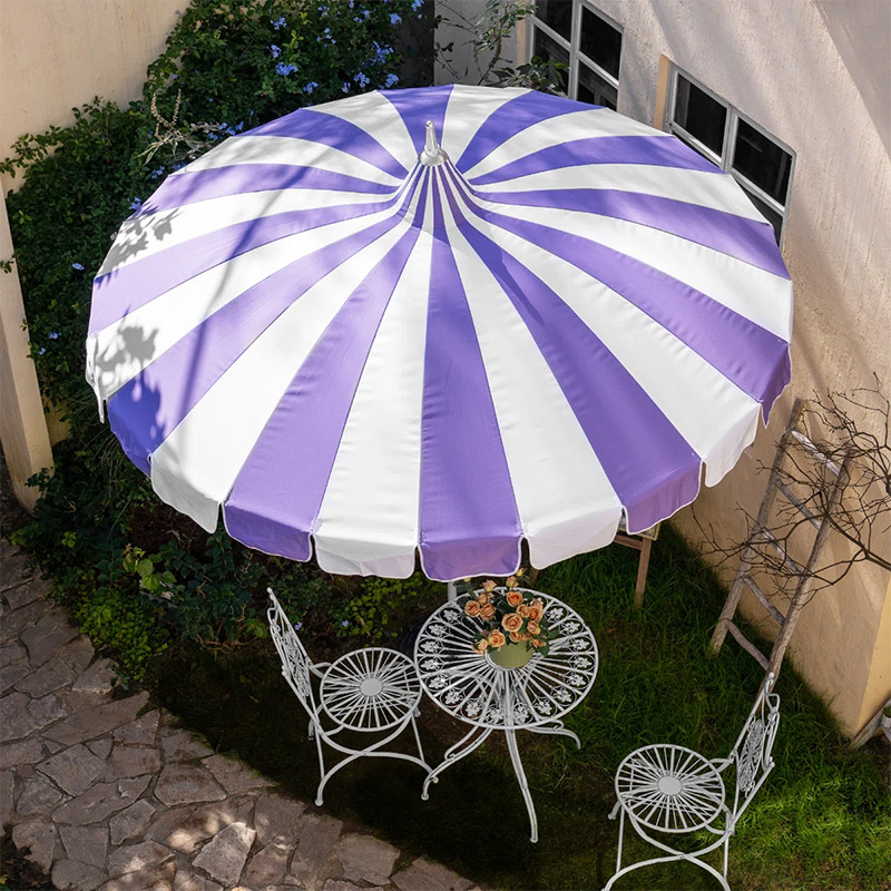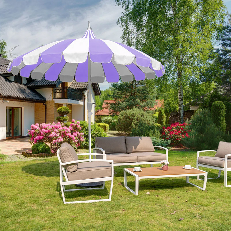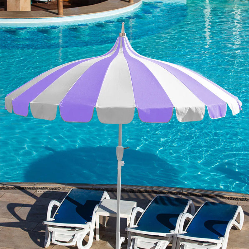 Custom Printed Luxury Garden Patio Sun Parasols Outdoor Vintage Pagoda Umbrella with purple and White Stripes