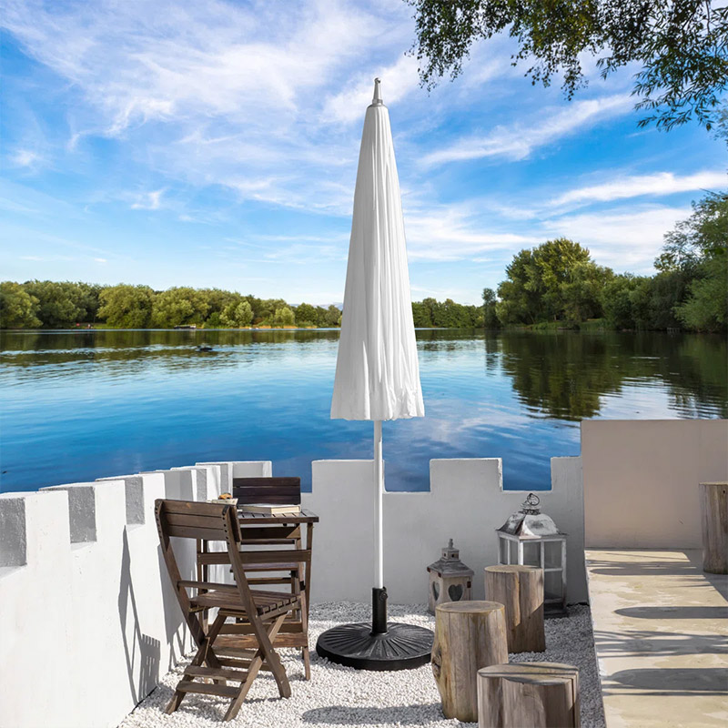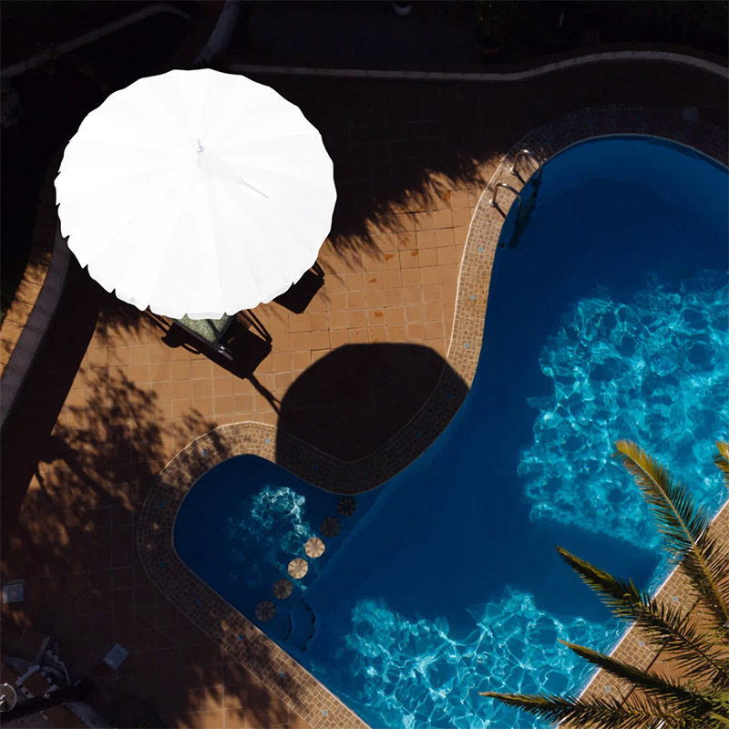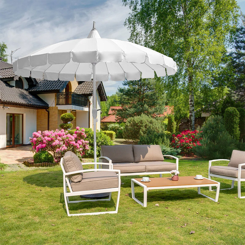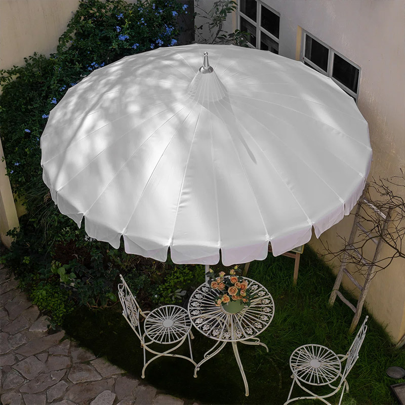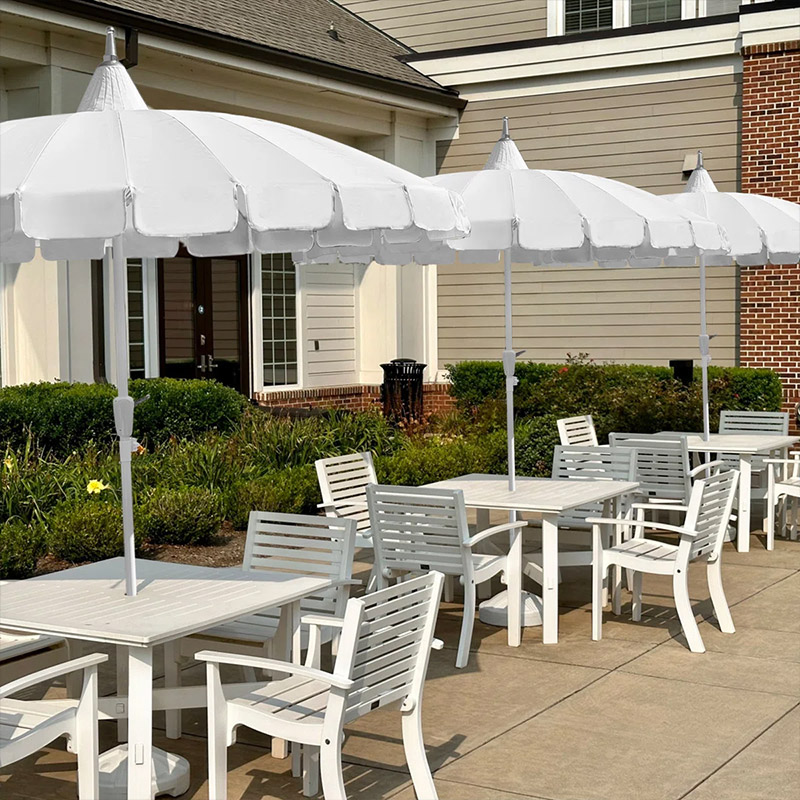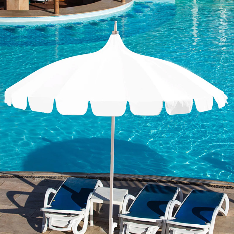 9、Custom Outdoor Large Pool Patio Fringe Sun Shade Parasols White Vintage Pagoda umbrella