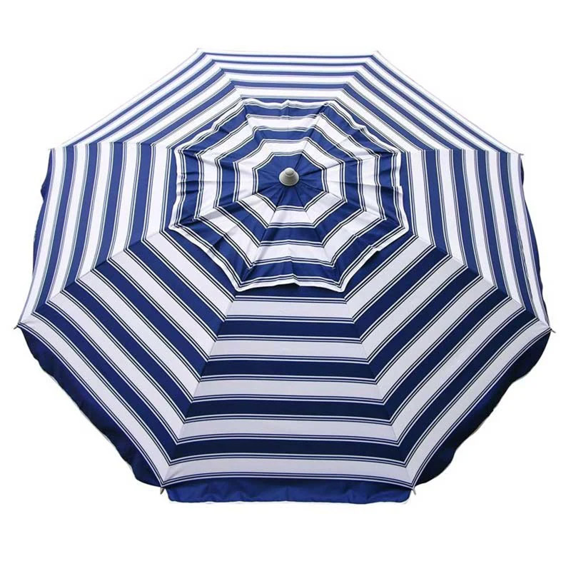 Classic Style Beach Umbrella Parasol with Navy Stripe Design